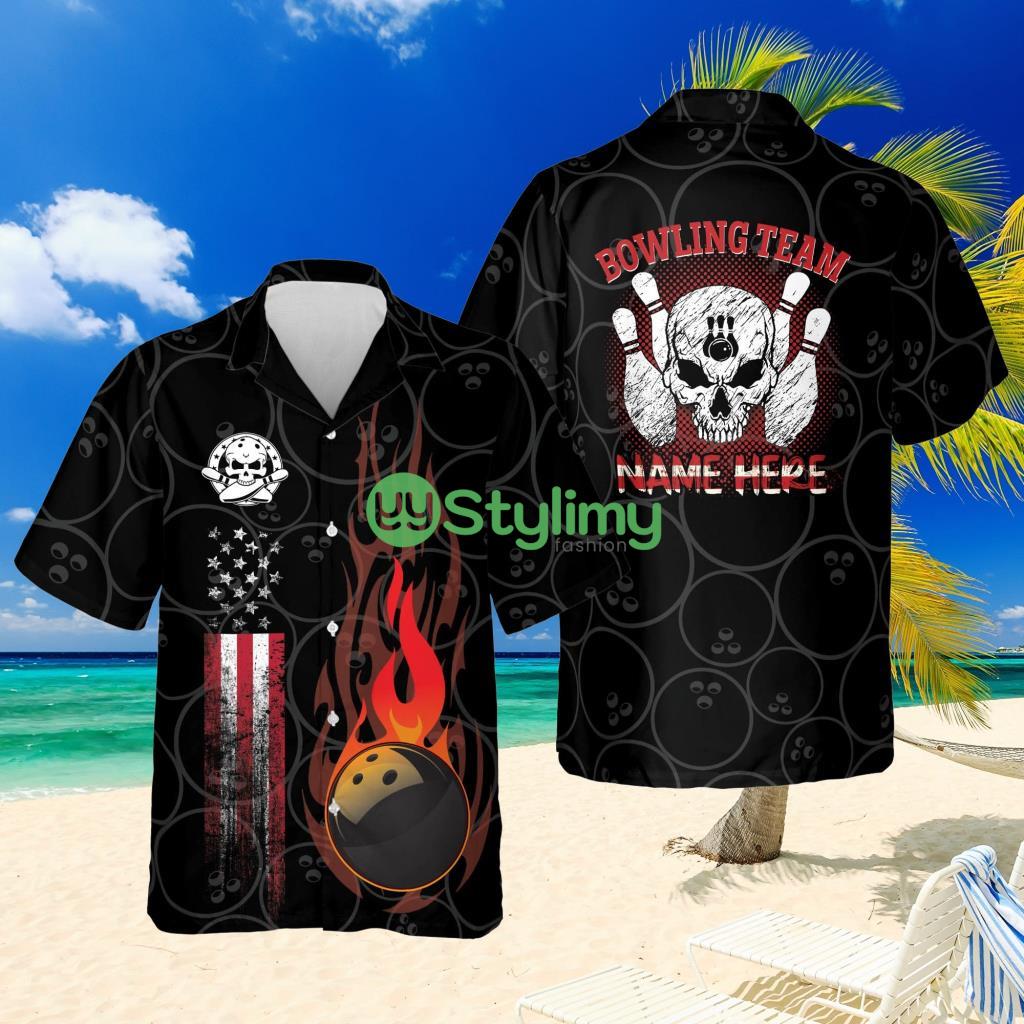 Funny Flame Skull Bowling Team Hawaiian Shirt Details: