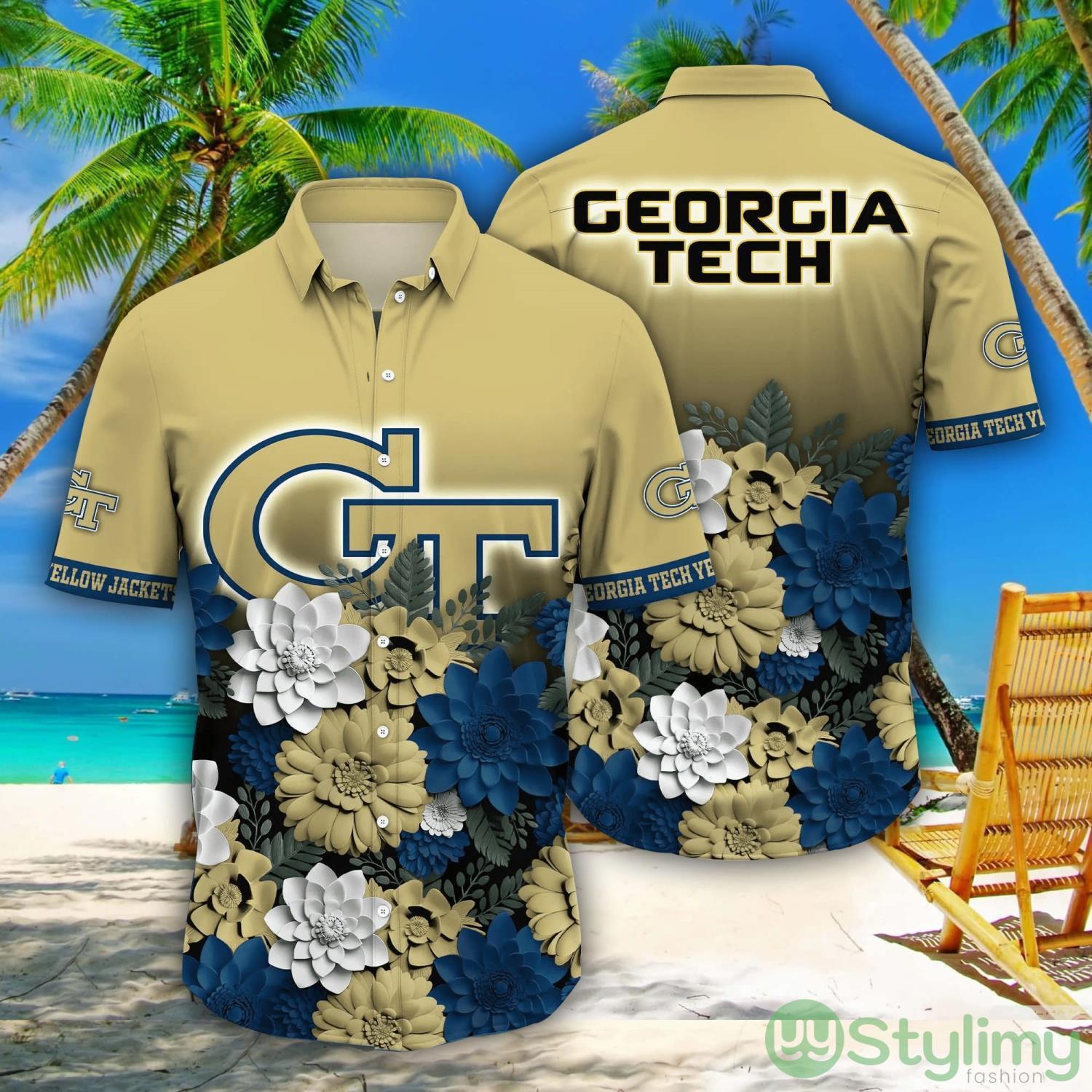 Georgia Tech Yellow Jackets NCAA3 Flower Pattern Hawaiian Shirt For Fans Details: