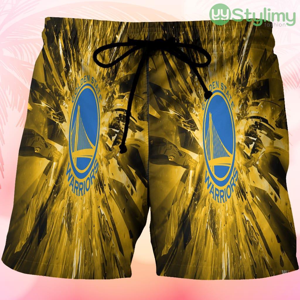 Golden State Warriors Emblem Texture Crystal Beach Hawaiian Shorts For Men Trending Summer Information