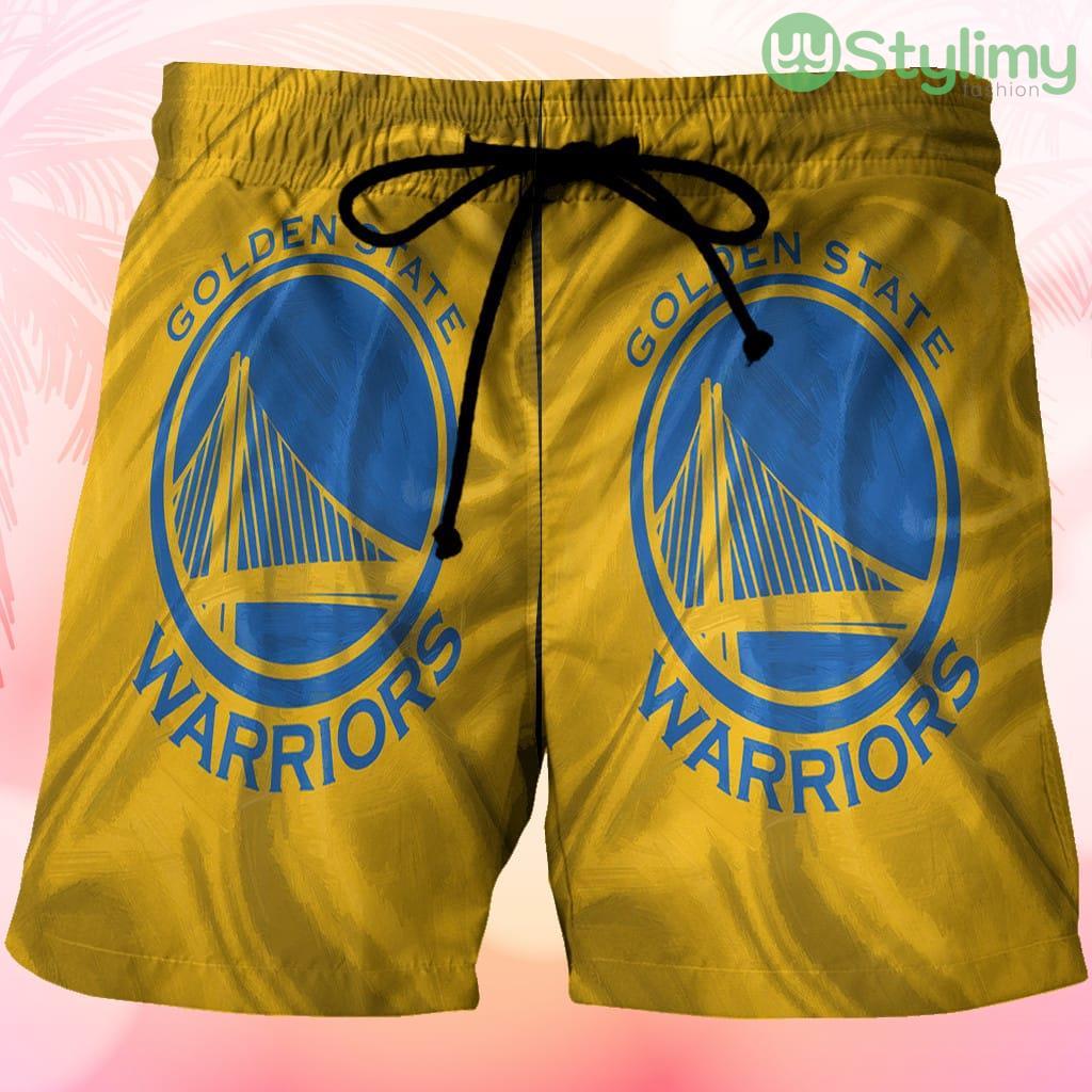 Golden State Warriors Emblem Texture Painting Beach Hawaiian Shorts For Men Trending Summer Information