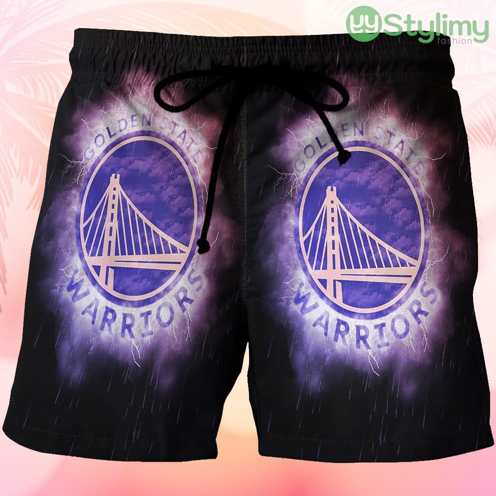 Some of the Golden State Warriors Emblem Texture Rainning Thunder Beach Hawaiian Shorts For Men Trending Summer photos