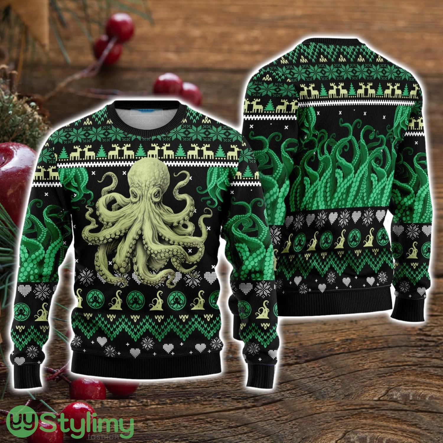 Green And Black Octopus The Call Of Great Old One Ugly Christmas Sweater Christmas Holiday Gift For Men And Women Informations: