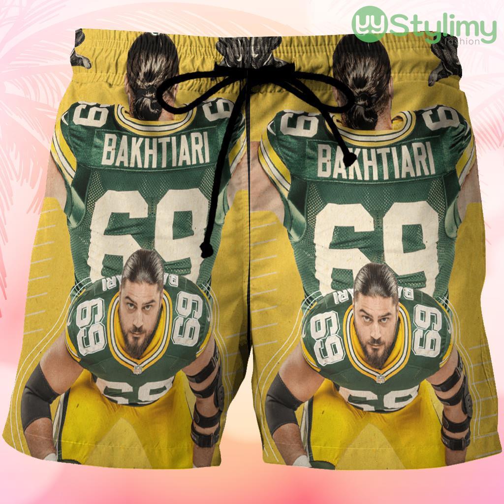 Green Bay Packers David Bakhtiari no69 Beach Hawaiian Shorts For Men Trending Summer Product Photo 1