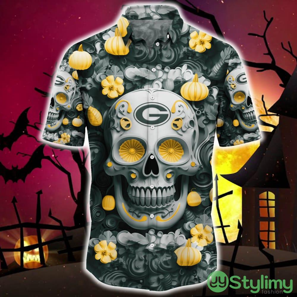 Green Bay Packers Halloween Pumpkin Skull 3D Hawaiian Shirt For Fans Gift Christmas Men And Women – Green Bay Packers Halloween Season Aloha Hawaii Shirt, New Arrivals_1