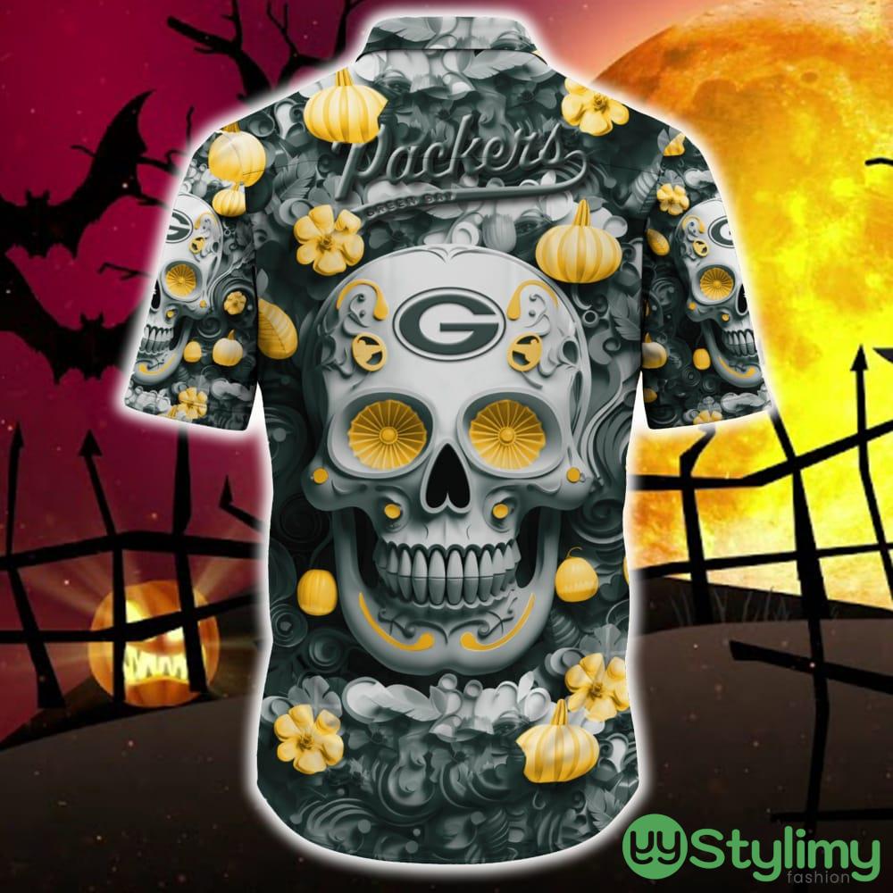 Green Bay Packers Halloween Pumpkin Skull 3D Hawaiian Shirt For Fans Gift Christmas Men And Women – Green Bay Packers Halloween Season Aloha Hawaii Shirt, New Arrivals_3