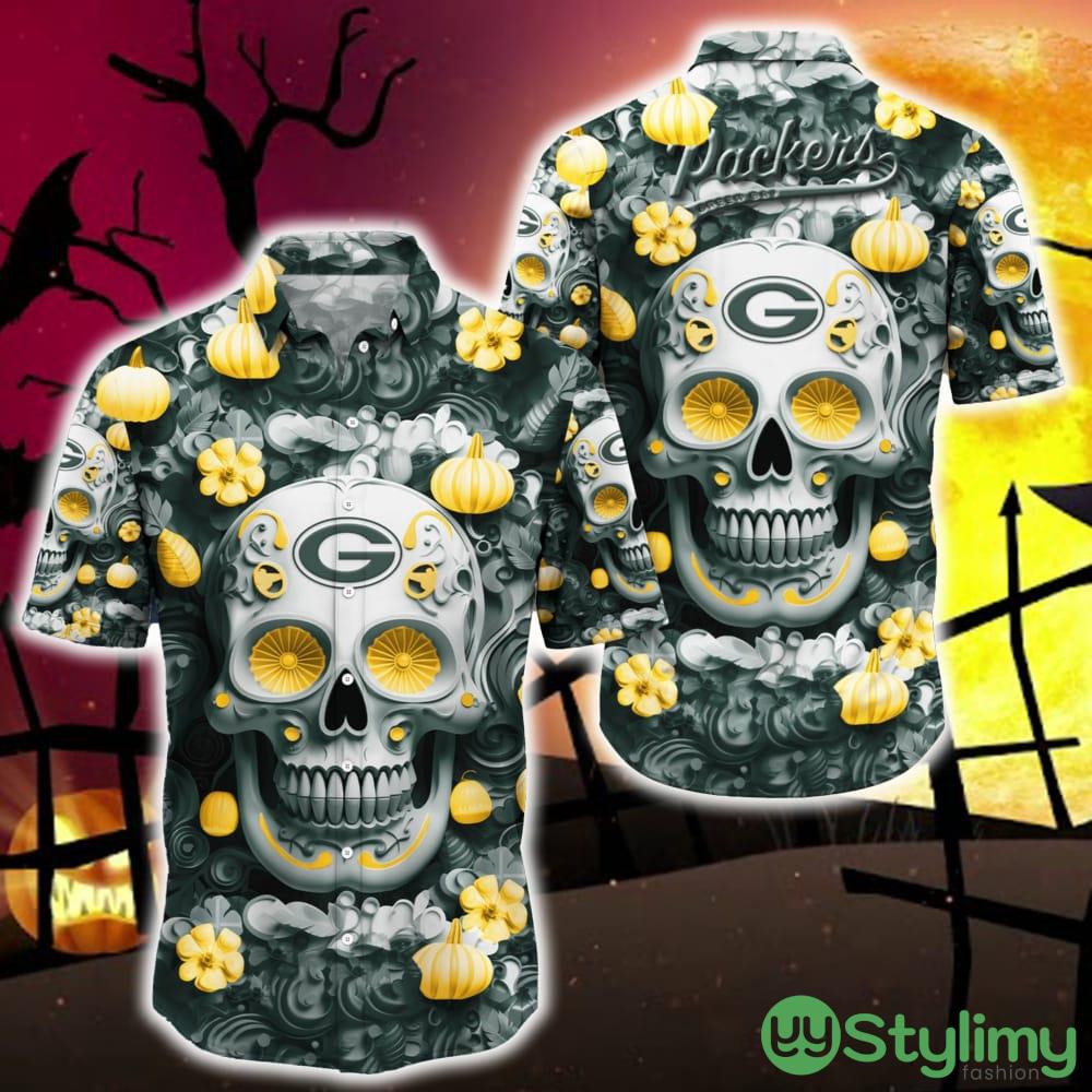 Green Bay Packers Halloween Pumpkin Skull 3D Hawaiian Shirt For Fans Gift Christmas Men And Women Details: