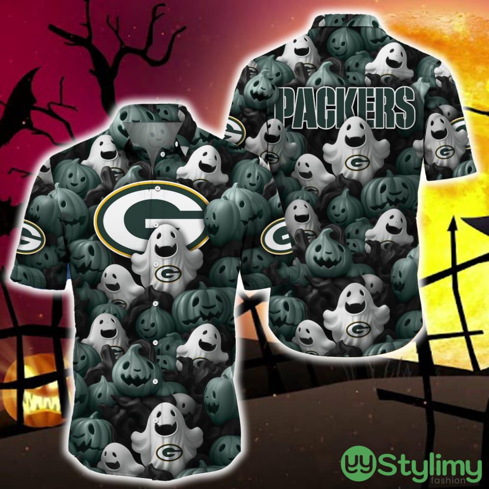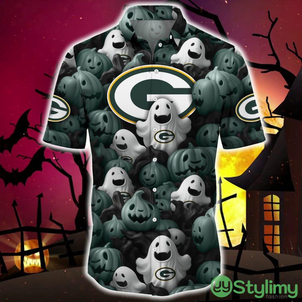 Green Bay Packers Halloween Pumpkin Skull 3D Hawaiian Shirt For Fans Gift Christmas Details: