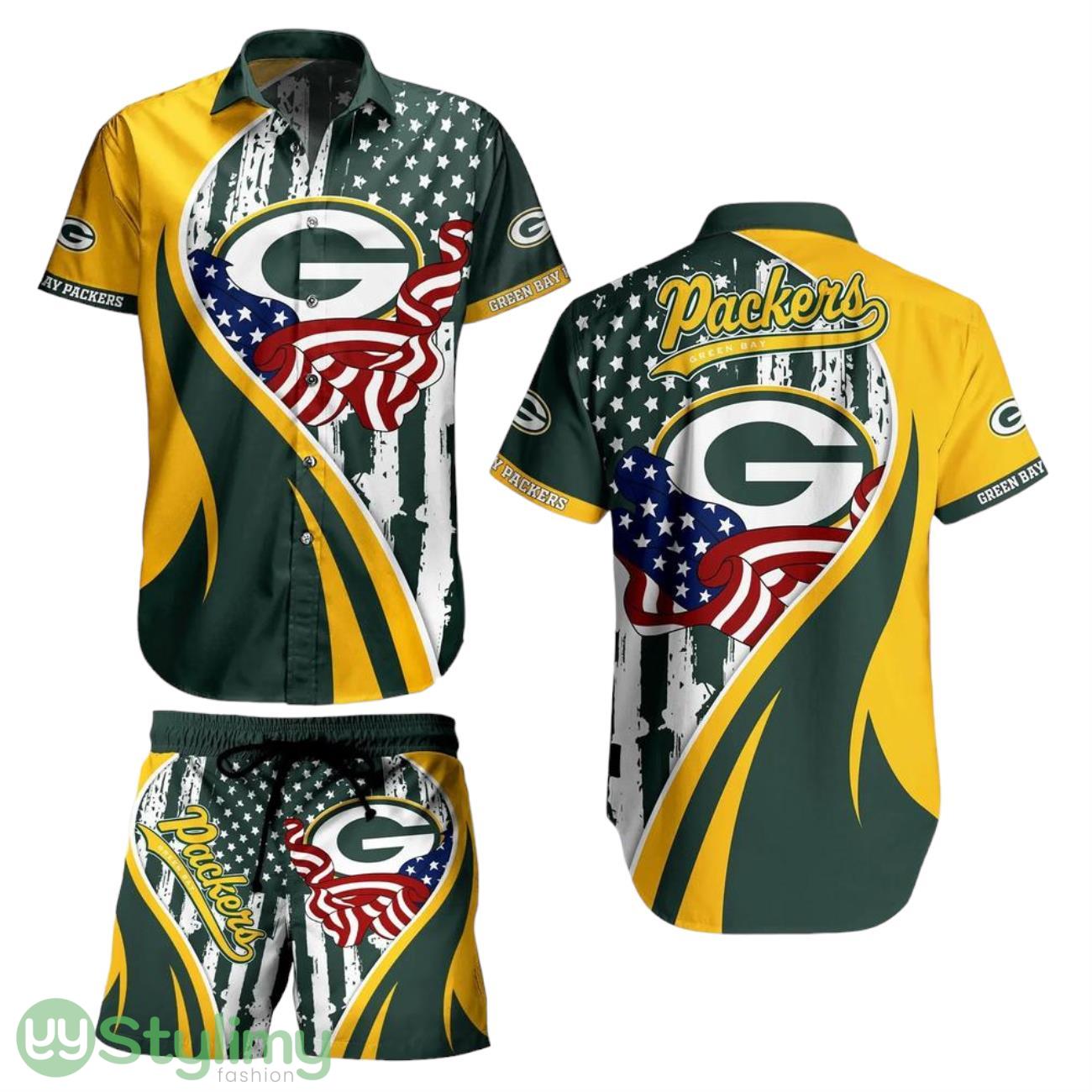 Green Bay Packers Nfl 3D Print Hawaiian Shirt And Shorts Vintage Us Flag Graphic Summer Gift For Men Women Fan Nfl Product Photo 1