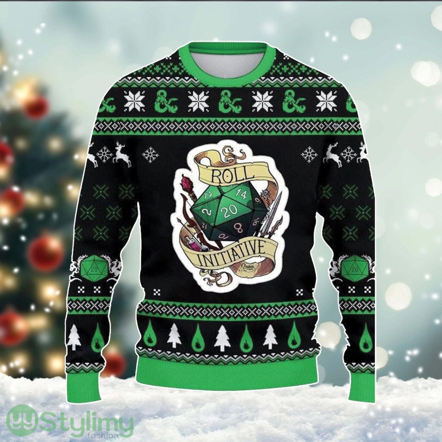 Green Black DnD Roll Initiative Ugly Christmas Sweater Cute Christmas Gift For Family Product Photo 1