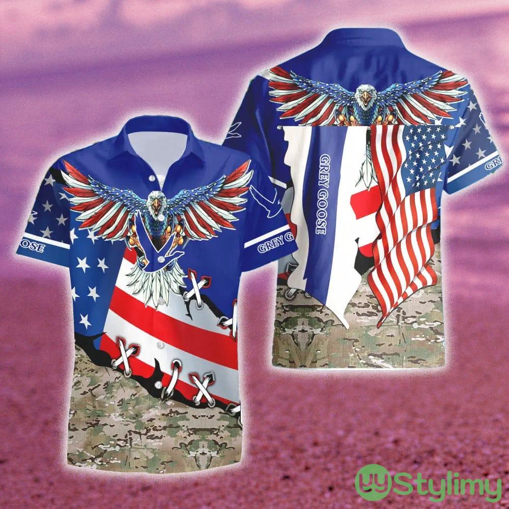 Get ready to celebrate in style with the Grey Goose Vodka Eagle USA Flag Hawaiian Combo Shirt and Short Gift Hawaiian for Men! This unique combo set is the perfect way to show off your patriotic spirit and love for Grey Goose Vodka.