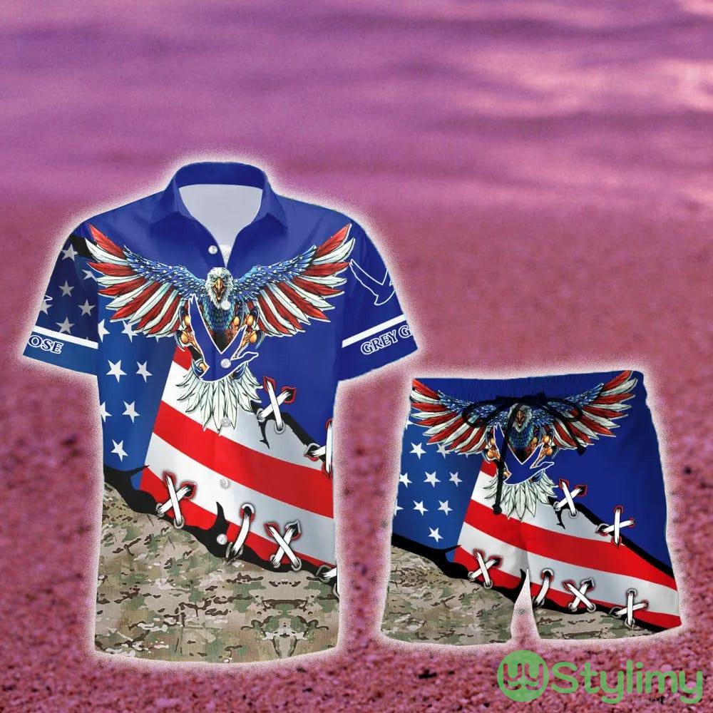 Grey Goose Vodka Eage USA Flag Hawaiian Combo Shirt And Short Gift Hawaiian For Mens Details: