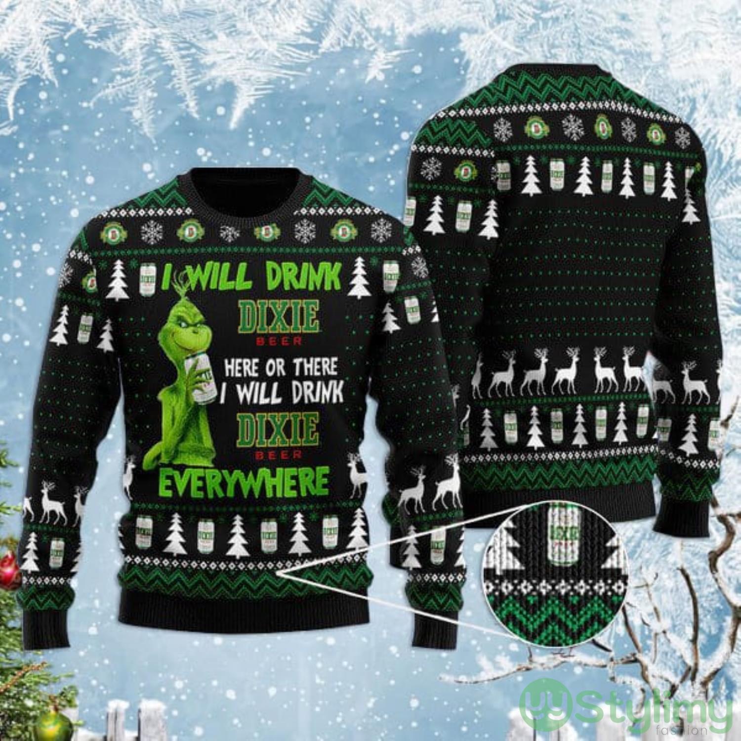 Grinch I Will Drink Dixie Beer Everywhere Christmas Gift Christmas Ugly Sweater Product Photo 1