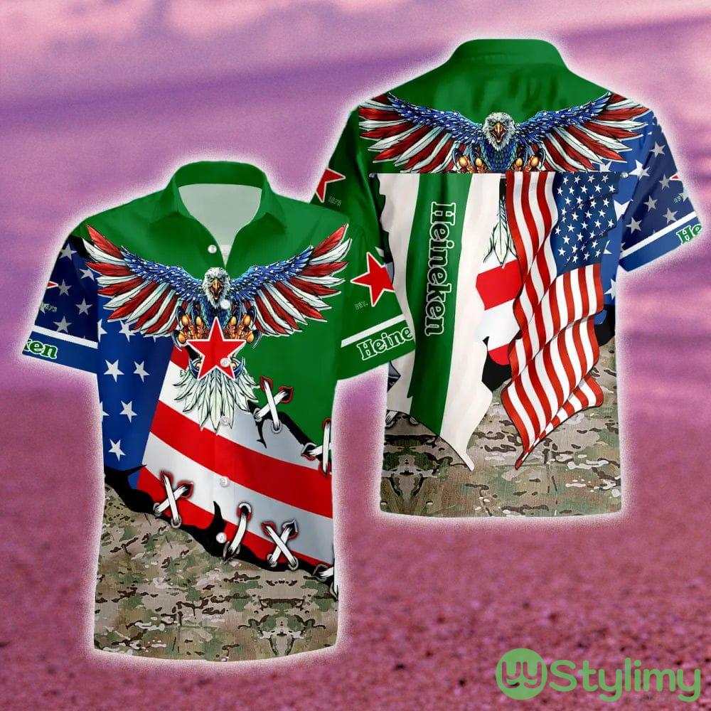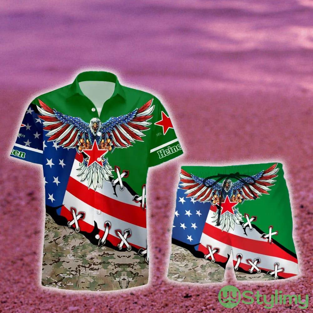 Heineken Eage USA Flag Hawaiian Combo Shirt And Short Gift Hawaiian For Mens – Heineken Eage USA Flag Hawaiian Shirt And Short_1