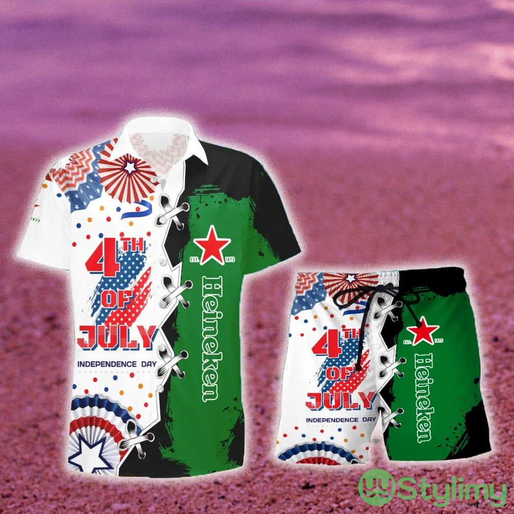 Heineken USA Flag Independence 4th of July Hawaiian Combo Shirt And Short Gift Hawaiian For Mens Details: