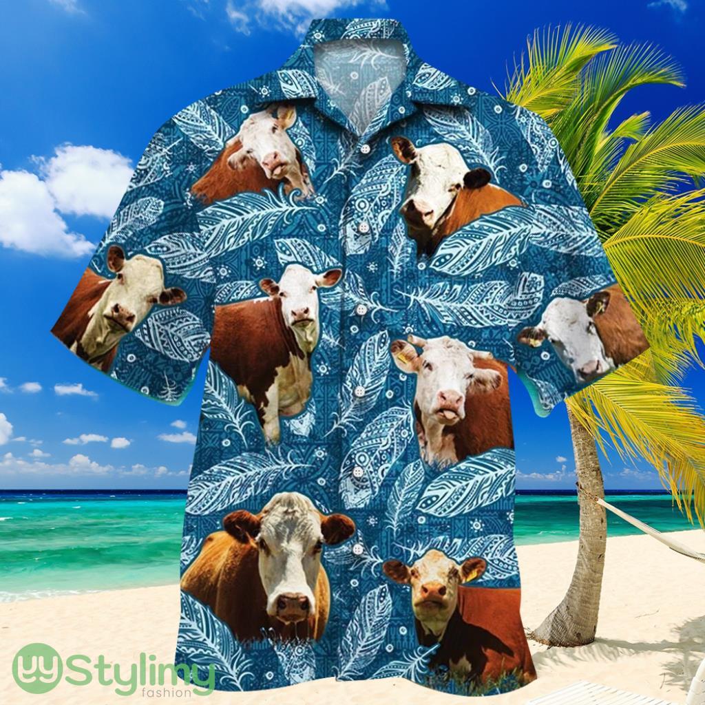 Some of the Hereford Cattle Lovers Blue Feather Hawaiian Shirt photos
