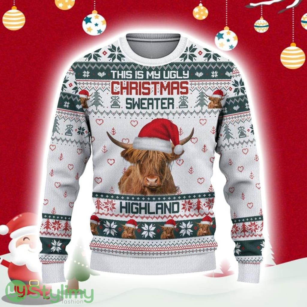 Highland Cattle Green Ugly Christmas Sweater Gift Christmas Product Photo 1