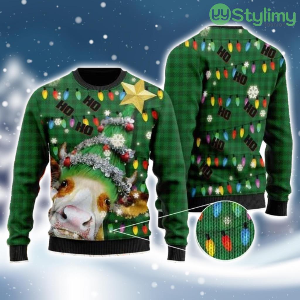 Ho Ho Ho Cow Christmas Tree Ugly Christmas Sweater 3D Best Gift Christmas