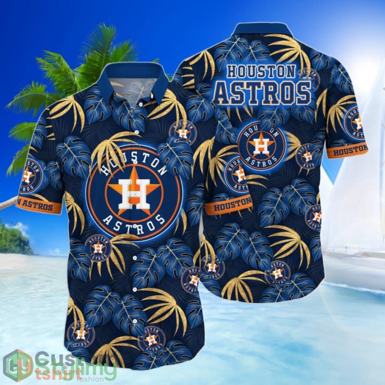 Houston Astros MLB Leave Pattern All Over Printed 3D Hawaiian Shirt Details: