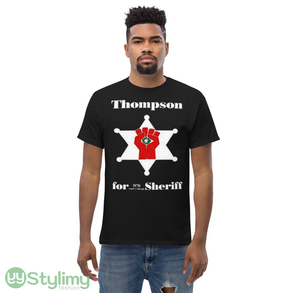 Looking for a unique and stylish way to express your love for the iconic Hunter S Thompson? Look no further than the Hunter S Thompson For 1970 Aspen Colorado Sheriff Shirt. Featuring a classic design inspired by Thompson’s tenure as sheriff of Aspen, Colorado, this shirt is sure to turn heads and make a statement wherever you go. With its soft, comfortable fabric and high-quality construction, this shirt is the perfect choice for any fan of Hunter S Thompson or anyone looking to add a touch of retro cool to their wardrobe. So why wait? Order your Hunter S Thompson For 1970 Aspen Colorado Sheriff Shirt today and start turning heads!