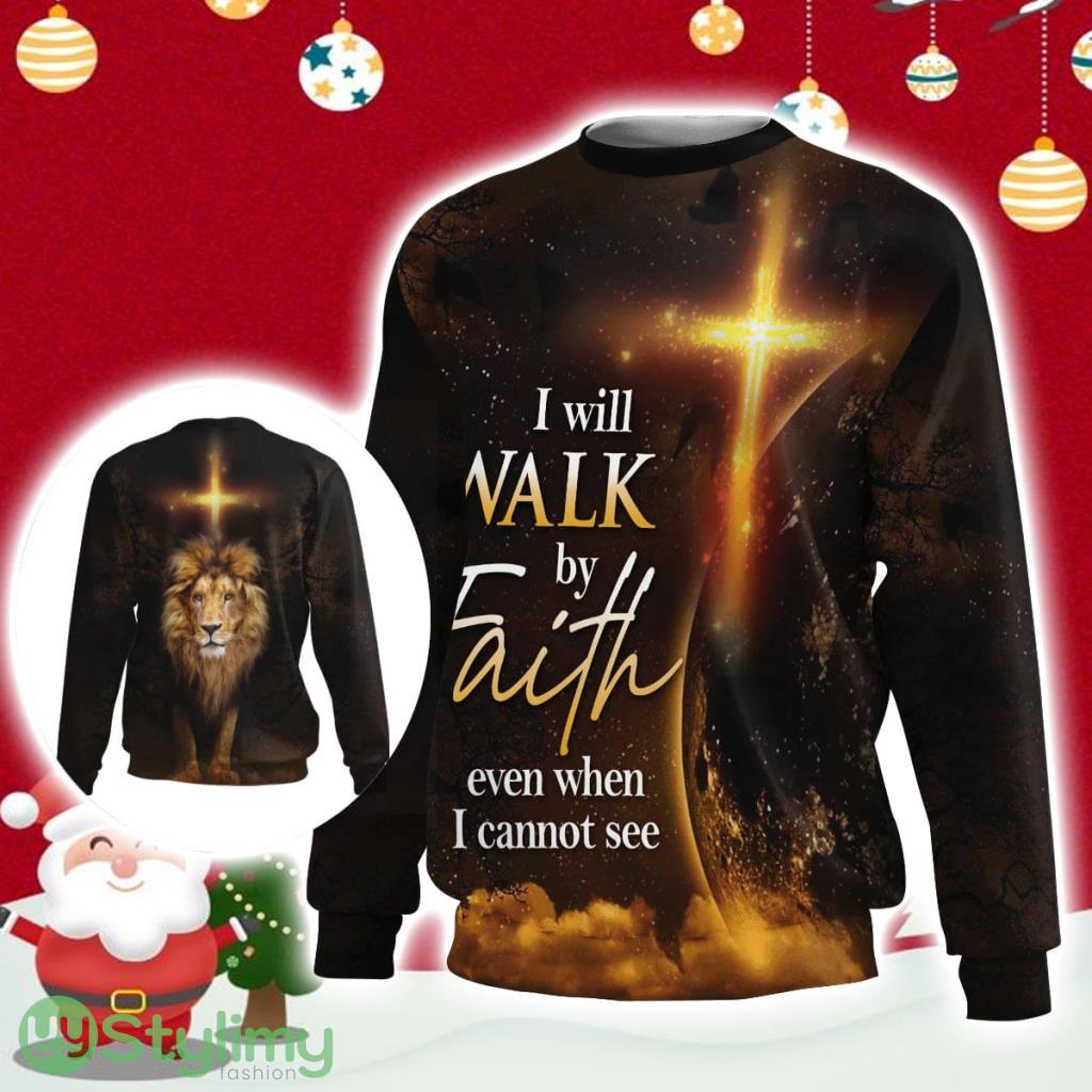 I Will Walk By Faith Even When Cannot See Lion Ugly Christmas Sweater Gift Christmas Product Photo 1