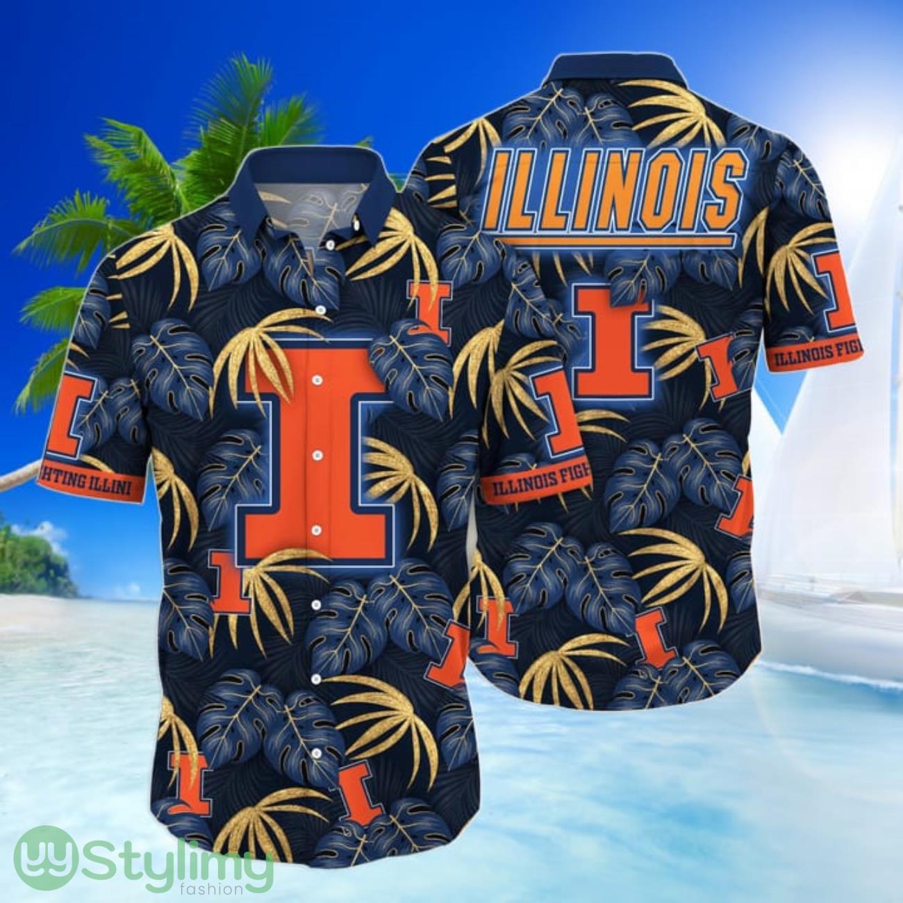 Illinois Fighting Illini NCAA3 Leave Pattern All Over Printed 3D Hawaiian Shirt Details: