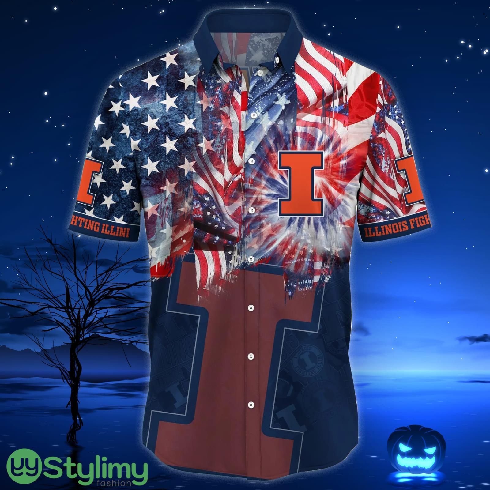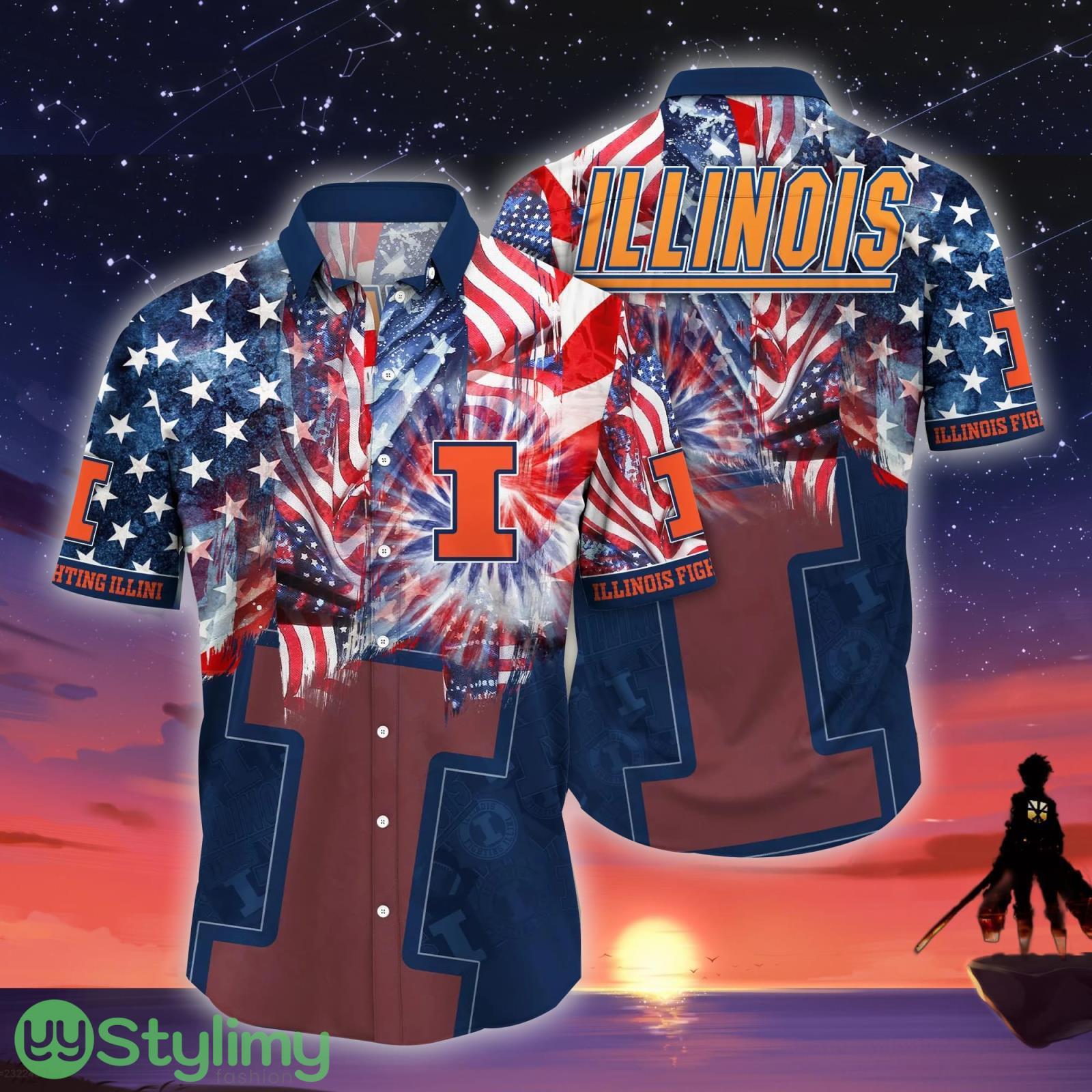 Illinois Fighting Illini NCAA3 US Flag Independence Day Hawaiian Shirt For Men And Women Details: