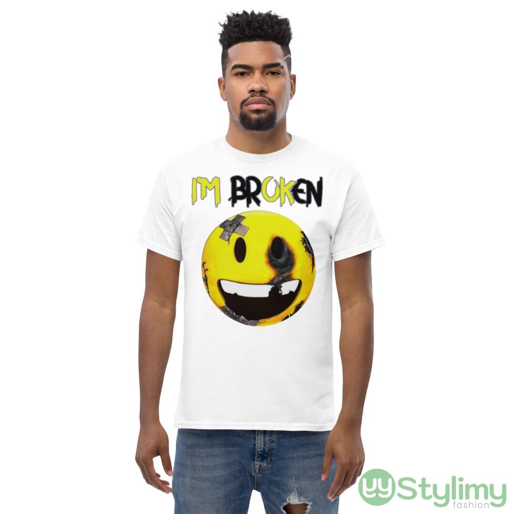 Looking for a trendy and unique T-shirt to add to your collection? Look no further than our “I’m broken” smiley design T-shirt! Featuring a distressed, yet playful smiley face graphic with the words “I’m broken” displayed in bold letters, this shirt is perfect for those who love to make a statement with their fashion choices. Made with high-quality materials and an ultra-soft cotton blend, this shirt is comfortable enough to wear all day long. Whether you’re dressing it up with a blazer or keeping it casual with jeans, this versatile T-shirt is sure to turn heads wherever you go. So why wait? Get your hands on our “I’m broken” smiley design T-shirt today and show off your unique sense of style!