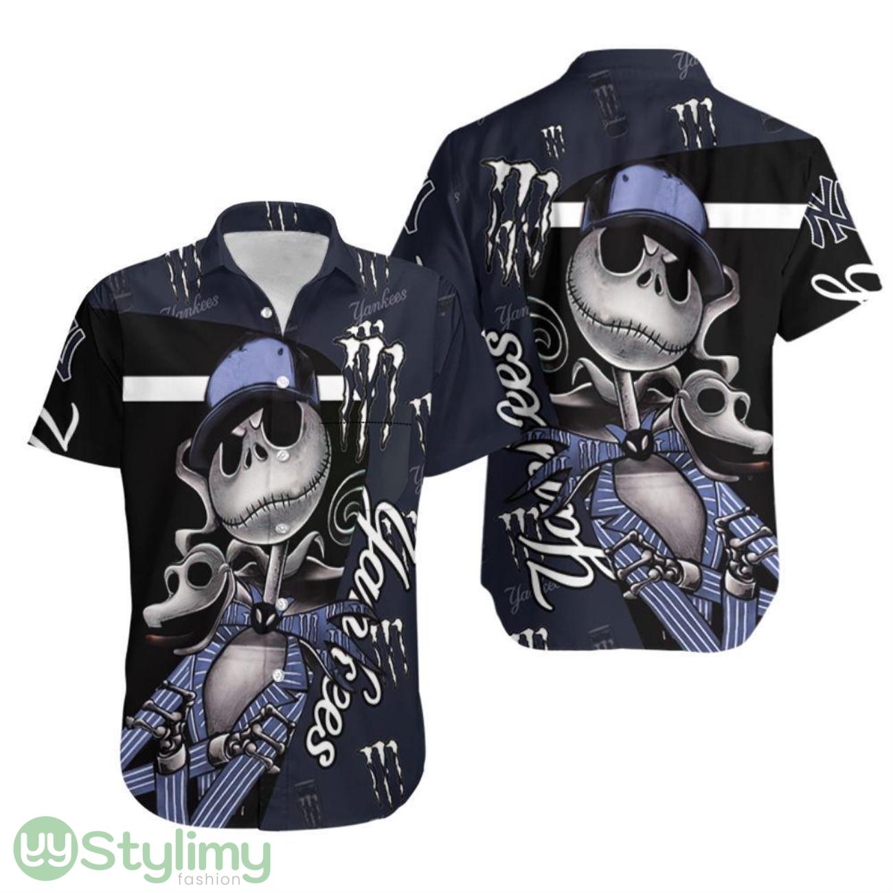 Jack Skellington Monster Energy Logo New York Yankees Hawaiian Shirt Aloha Shirt for Men Women Details: