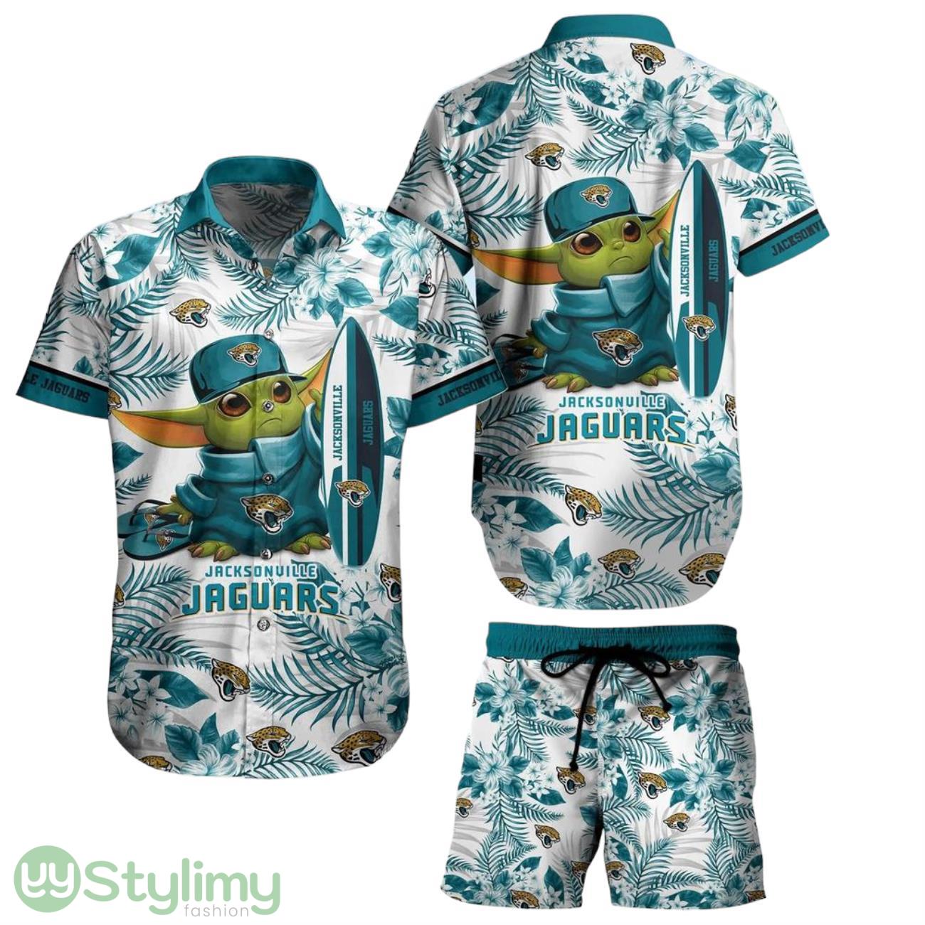 Jacksonville Jaguars Nfl Baby Yoda 3D Printed Hawaiian Shirt And Short Style Tropical Pattern Summer Best Gift For Fan Details: