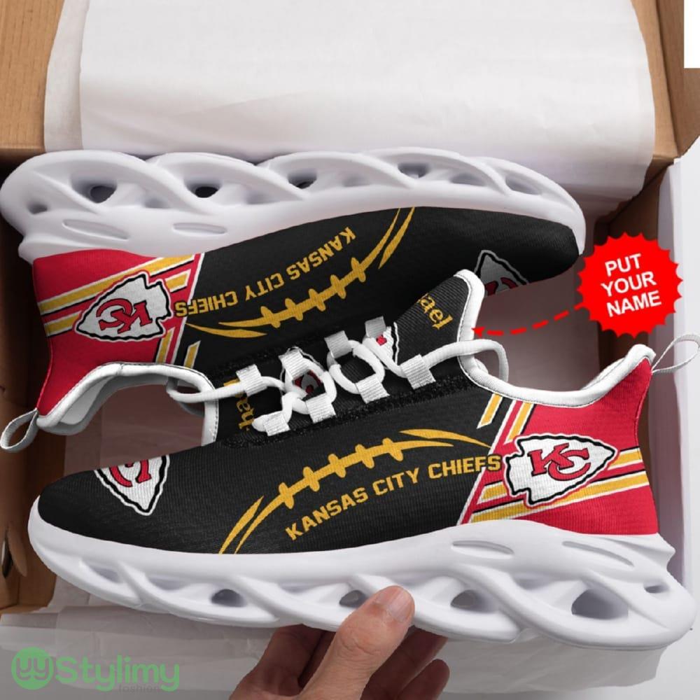 Some of the Kansas City Chiefs Logo Pattern In Black Custom Name 3D Max Soul Sneaker Shoes photos