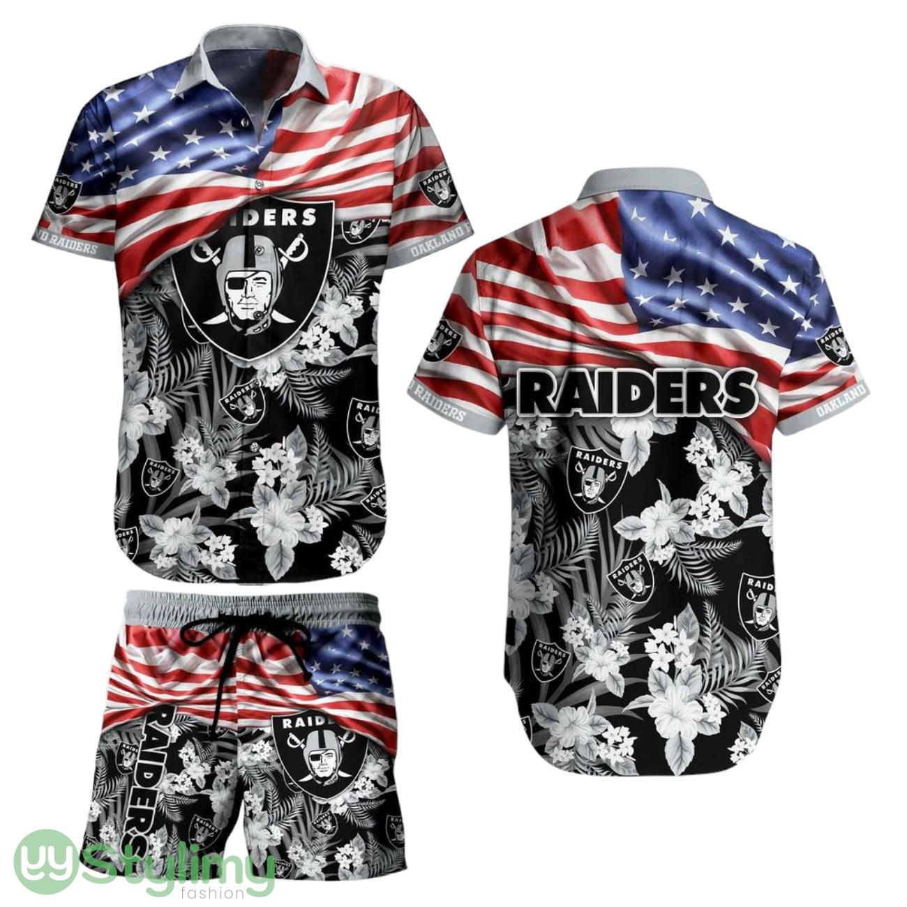 Las Vegas Raiders NFL 3D Print Hawaiian Shirt And Shorts Summer Tropical Pattern US Flag Best Gift For Sports Enthusiast Product Photo 1