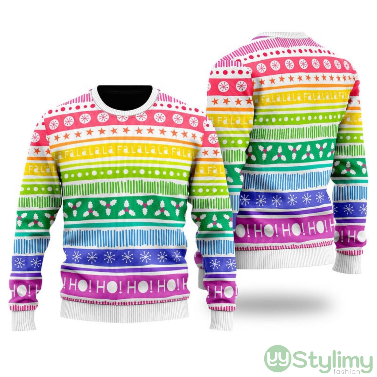 LGBT Rainbow Cozy Holiday Ugly Sweater, Ugly Holiday Ho Ho Ho Sweater Product Photo 1