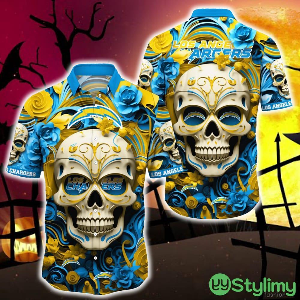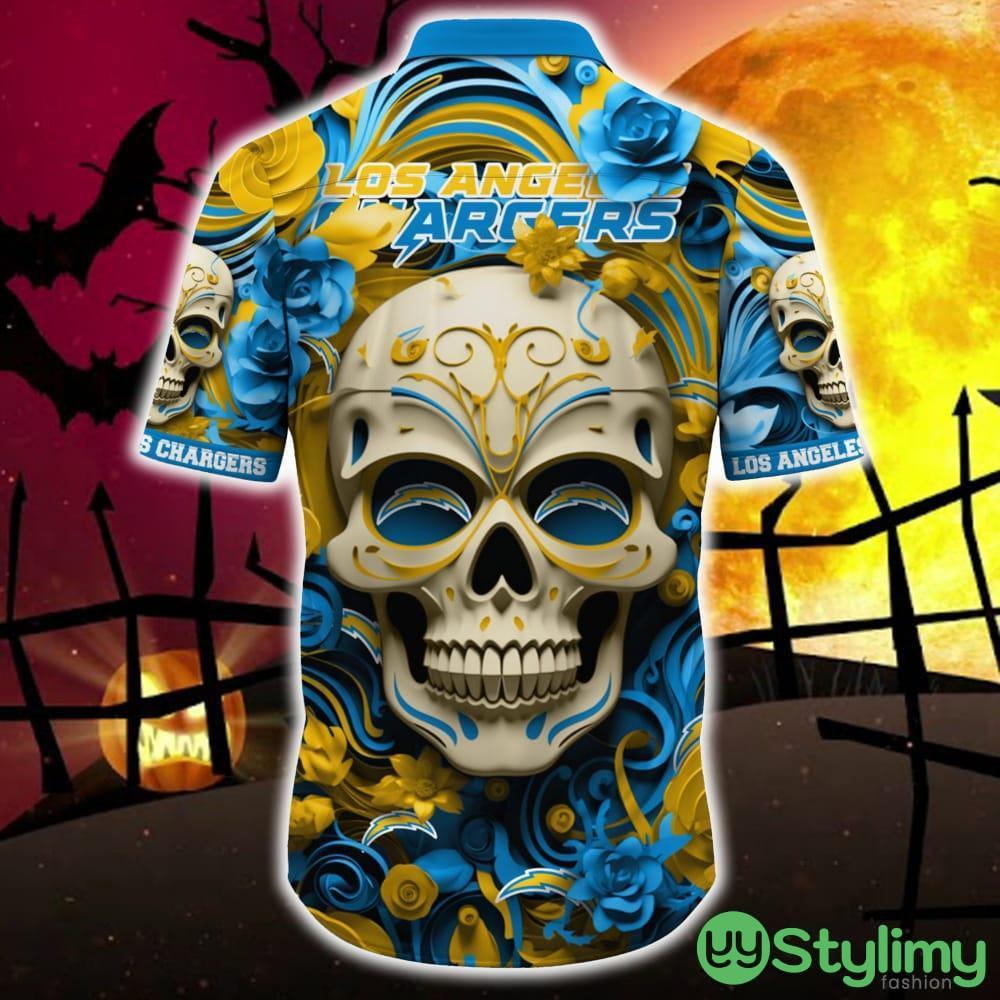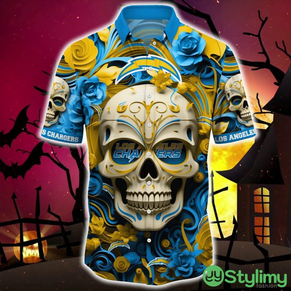 Los Angeles Chargers Halloween Skull 3D Hawaiian Shirt For Fans Gift Christmas Men And Women Details: