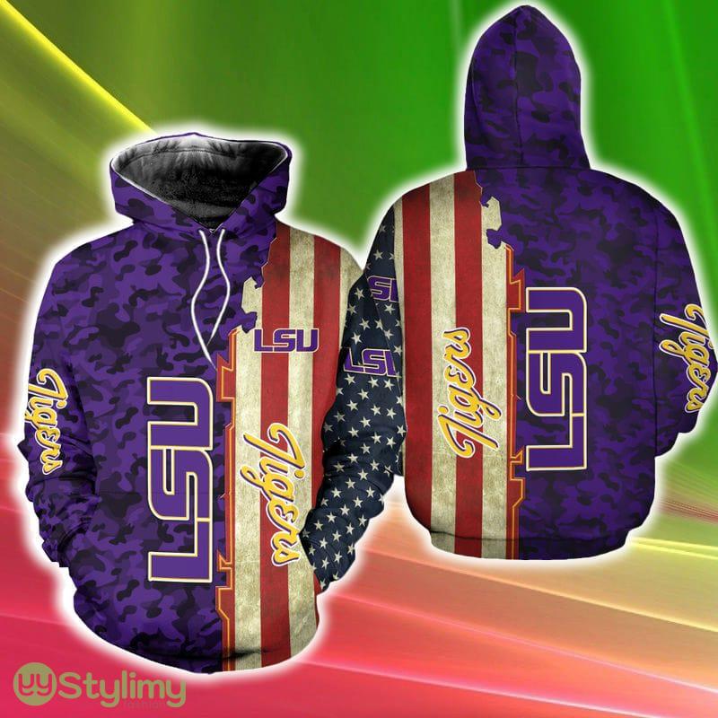 Perfect design for holiday. Get yours this shirt or this is a cute item for your daddy, gift for your mom, and gift for friends on any occasion. buy a cute LSU Tigers America Flag Frozen 3D Hoodie Zip Hoodie Cold All Over Printed For Fans Gift Christmas Holidays now.