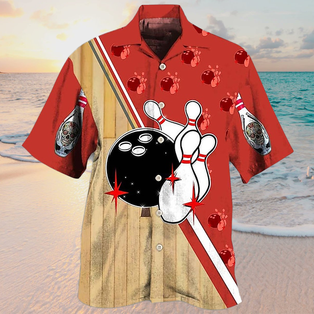 Mens Shirt Summer Hawaiian Shirt Prints Bowling Ball TurnCasual HolidayPrint Clothing Fashion Hawaiian Details: