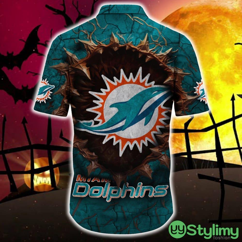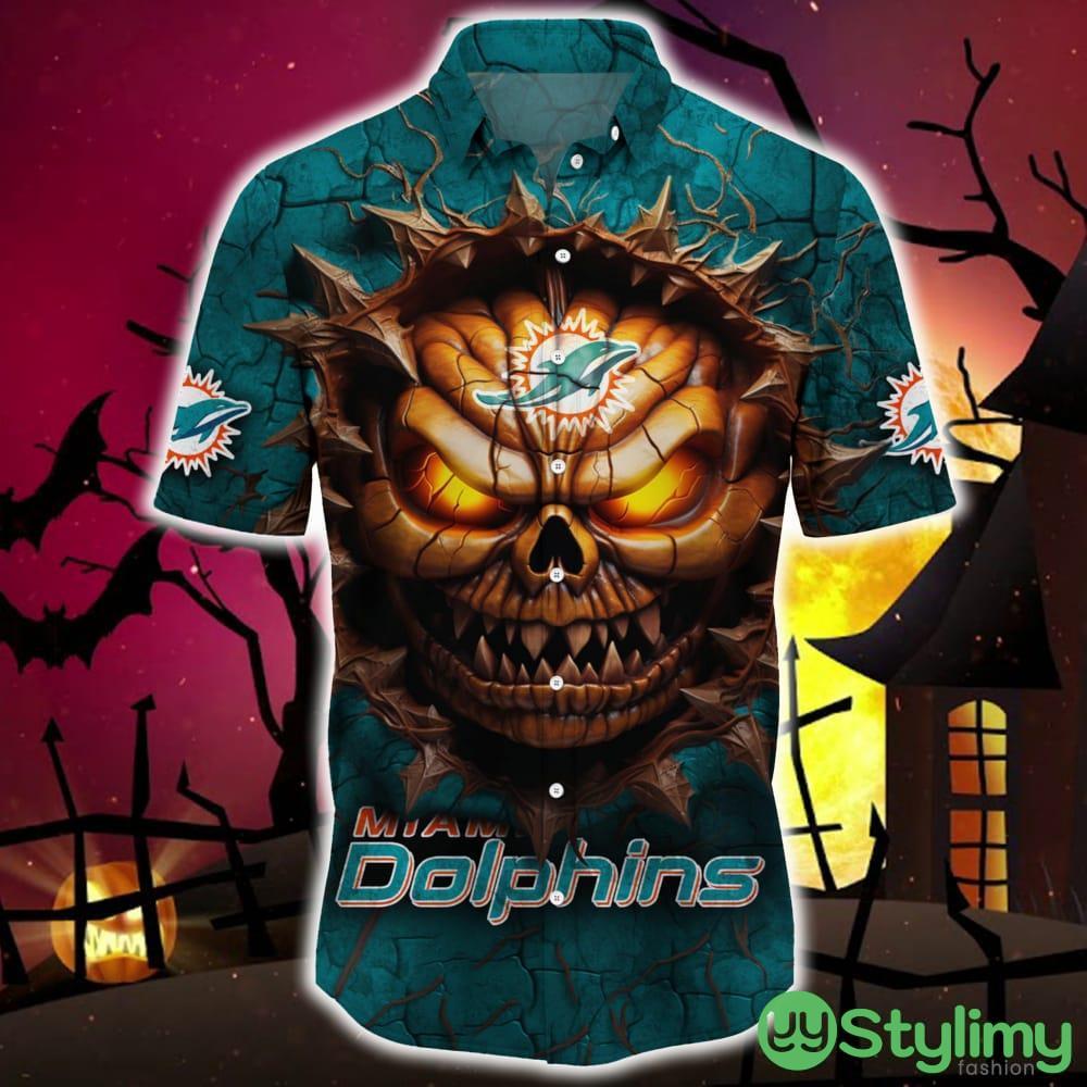 Miami Dolphins Halloween Angry Skull 3D Hawaiian Shirt For Fans Gift Christmas Men And Women Details: