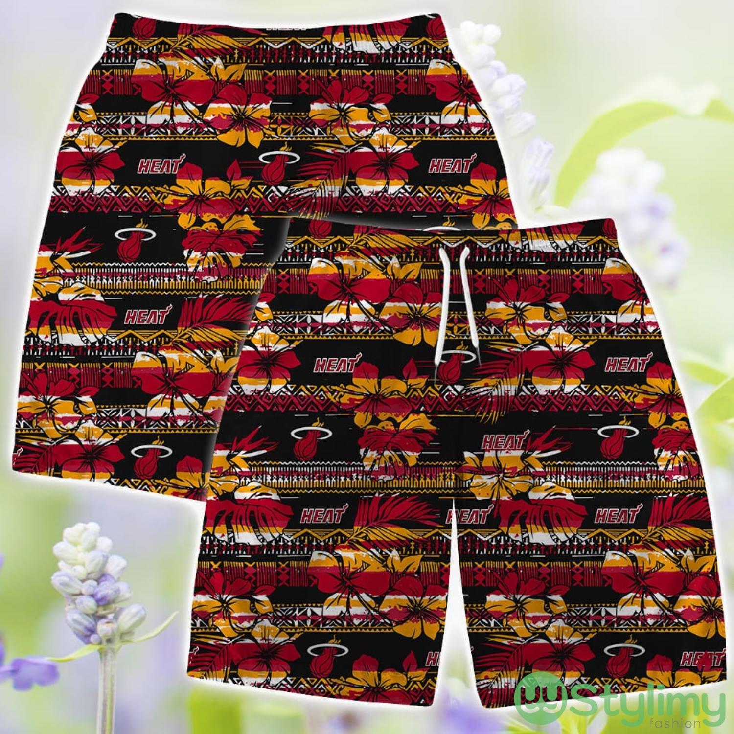 Miami Heat Hawaii Set Pattern Vintage 3D Hawaiian Shirt And Shorts Details: