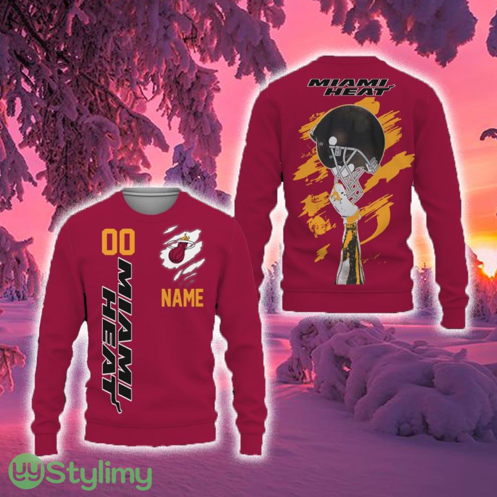 Don’t miss out on this must-have Christmas gift for Miami Heat fans. Order your Miami Heat Sports American Football Helmet New Trends Custom Number And Name 3D Sweater today and show your love for the team in a unique and fashionable way.