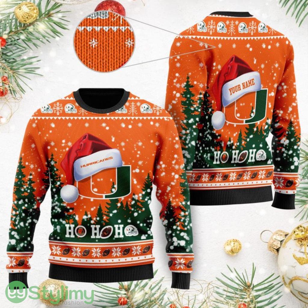 Miami Hurricanes NCAA Santa Claus Hat Ho Ho Ho 3D Custom Name Ugly Christmas Sweater Informations: