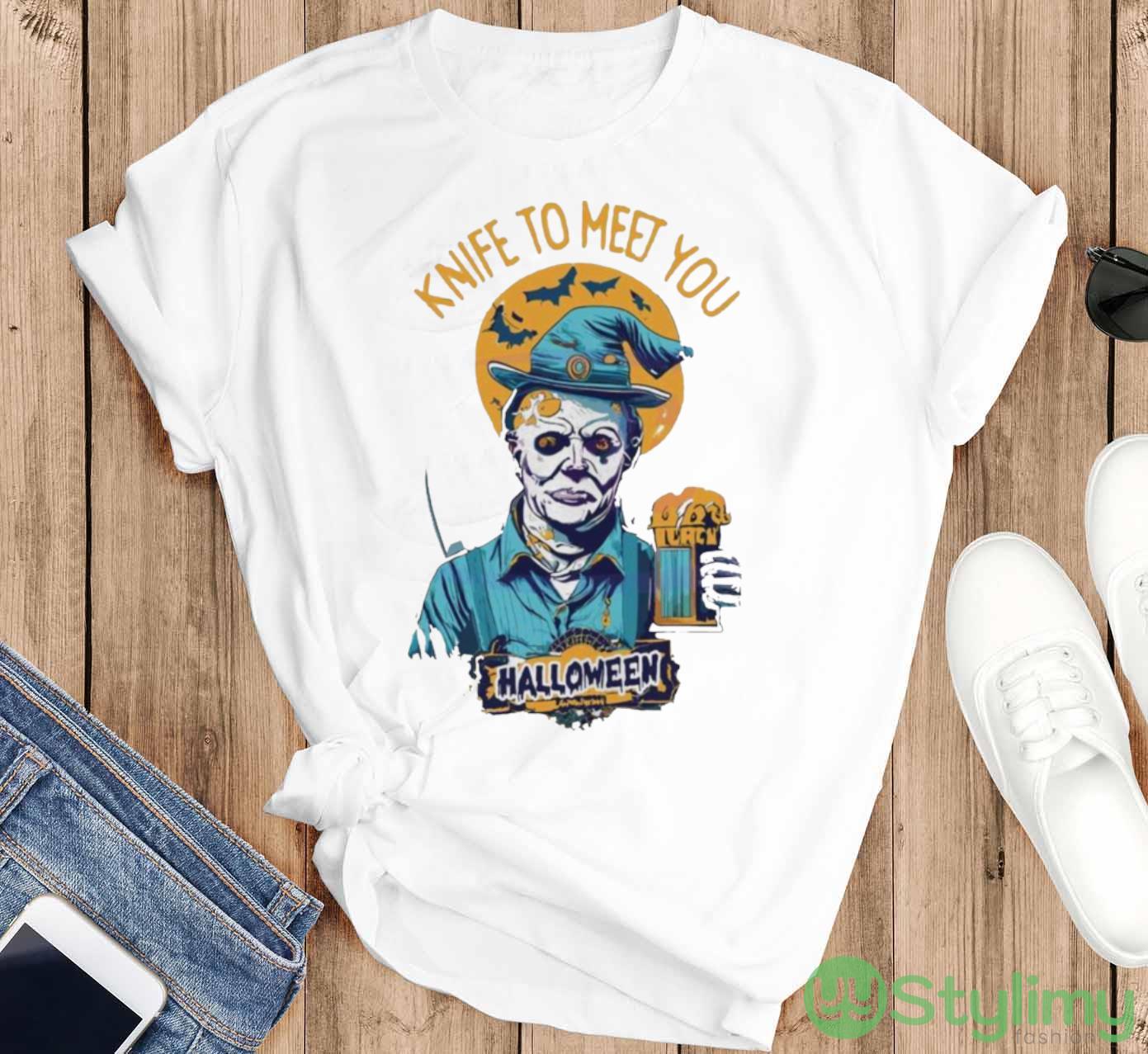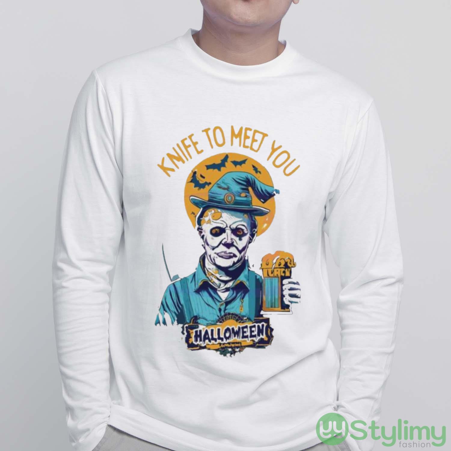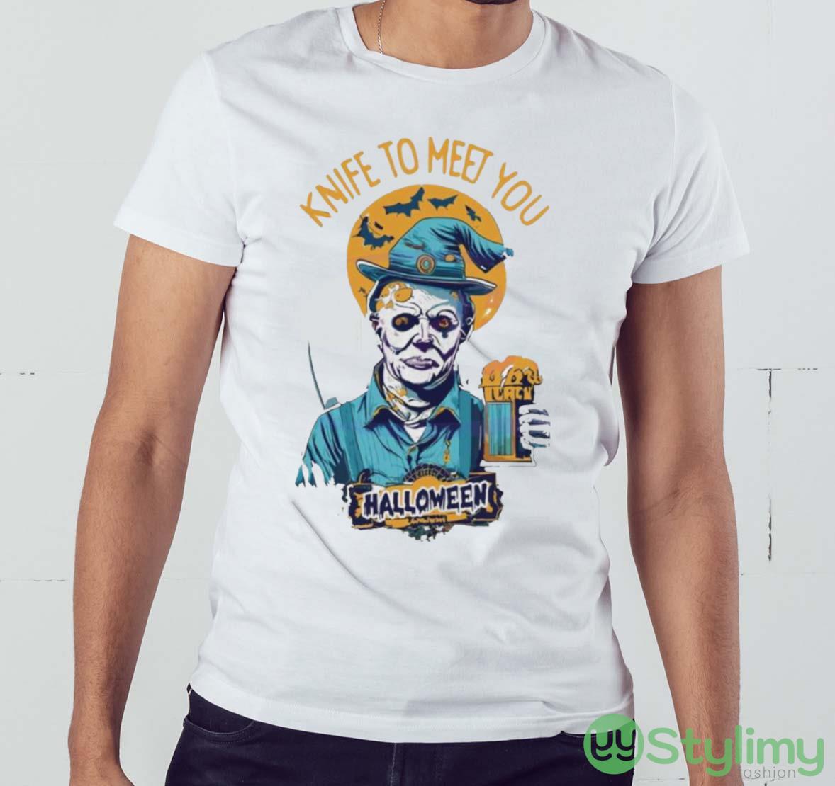 Michael Myers Drink Beer Knife To Meet You Halloween 2023 T shirt – T-SHIRT FLAT