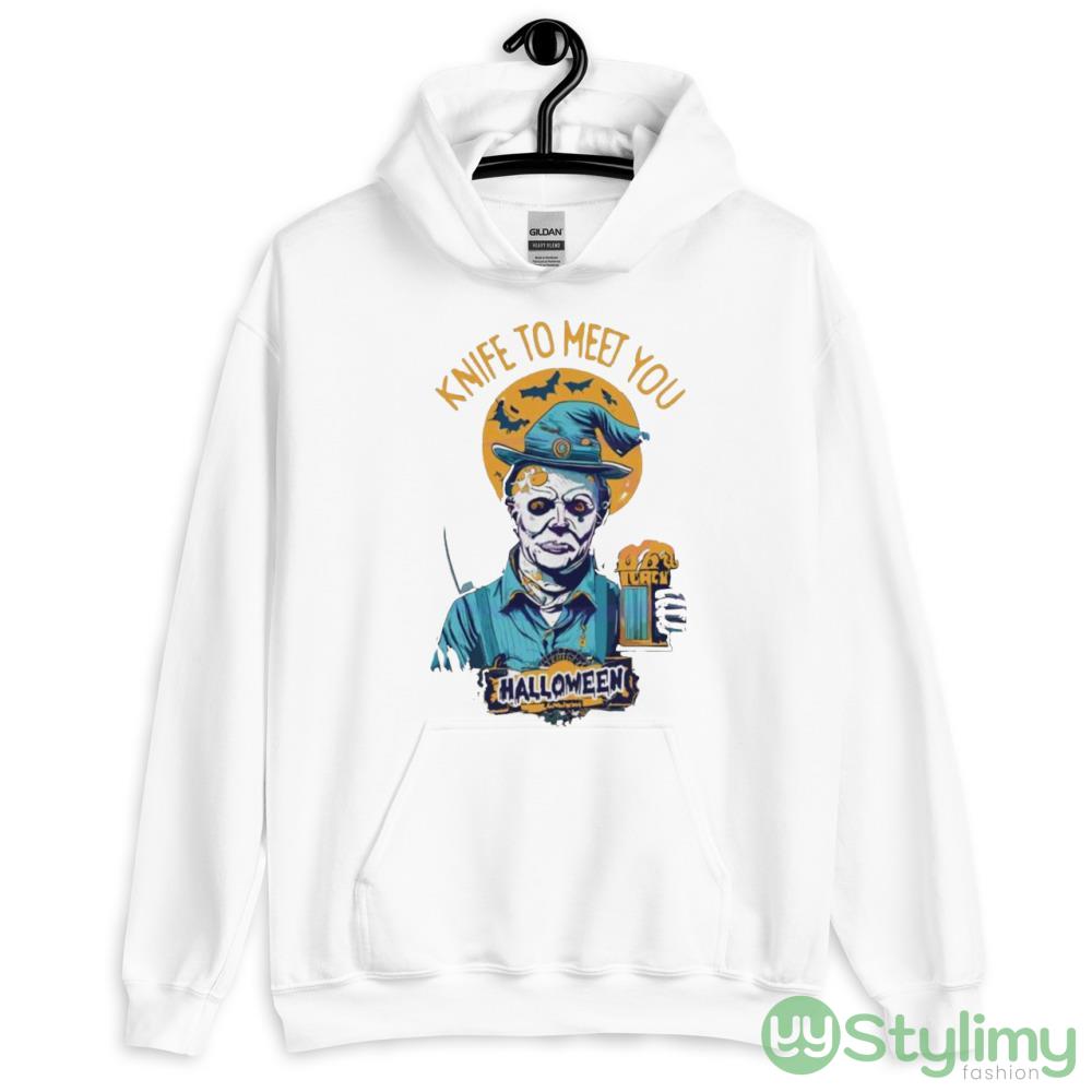 Michael Myers Drink Beer Knife To Meet You Halloween 2023 T shirt – 18500 Unisex Heavy Blend Hooded Sweatshirt-1