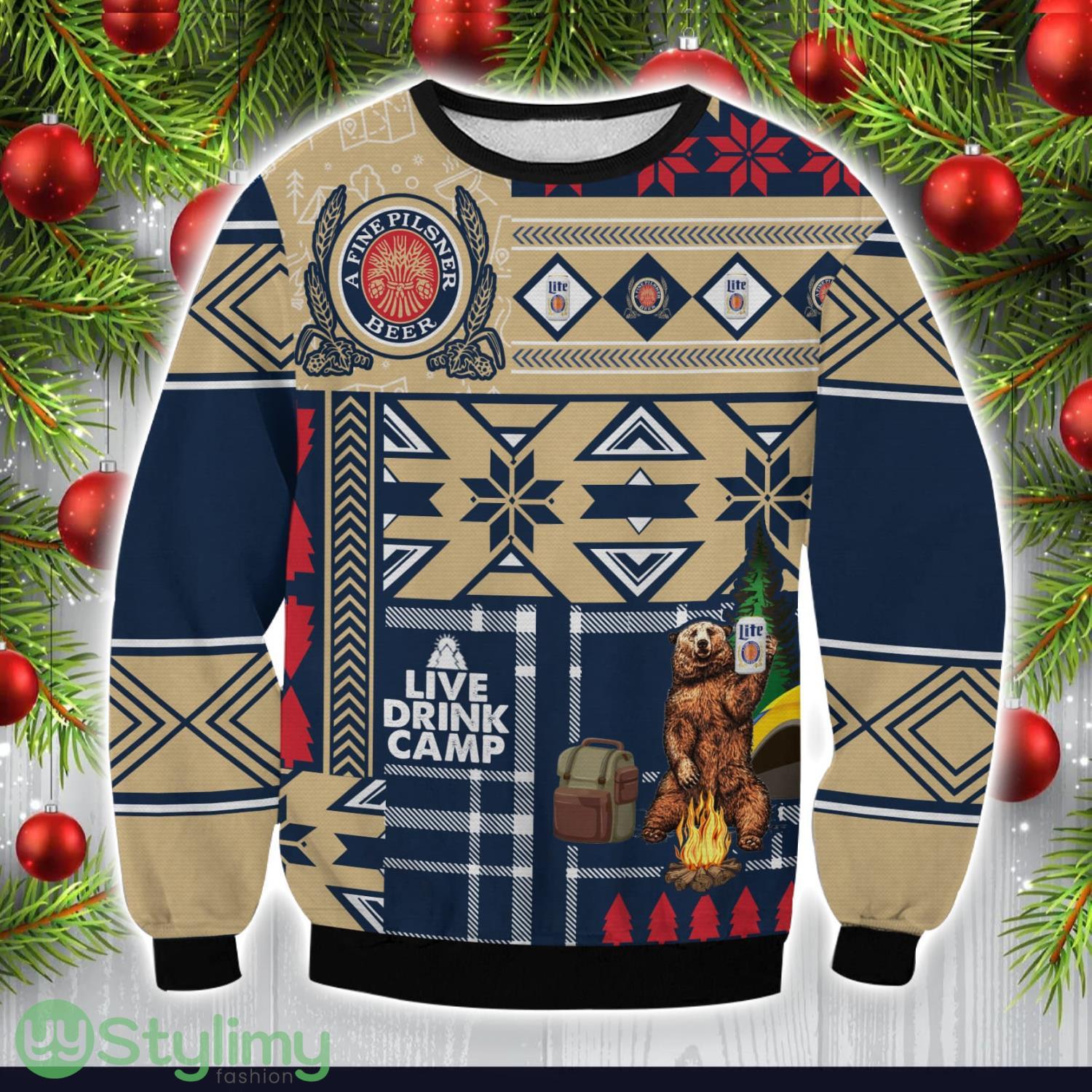 Miller Lite Camping Ugly Christmas Sweater Special Christmas Gift Product Photo 1