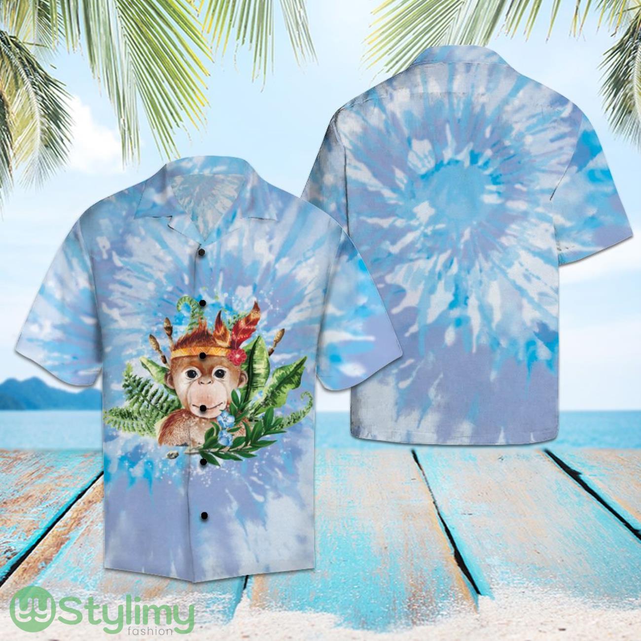 Monkey Blue Tie Dye 3D Aloha Hawaiian Shirt For Men And Women Details: