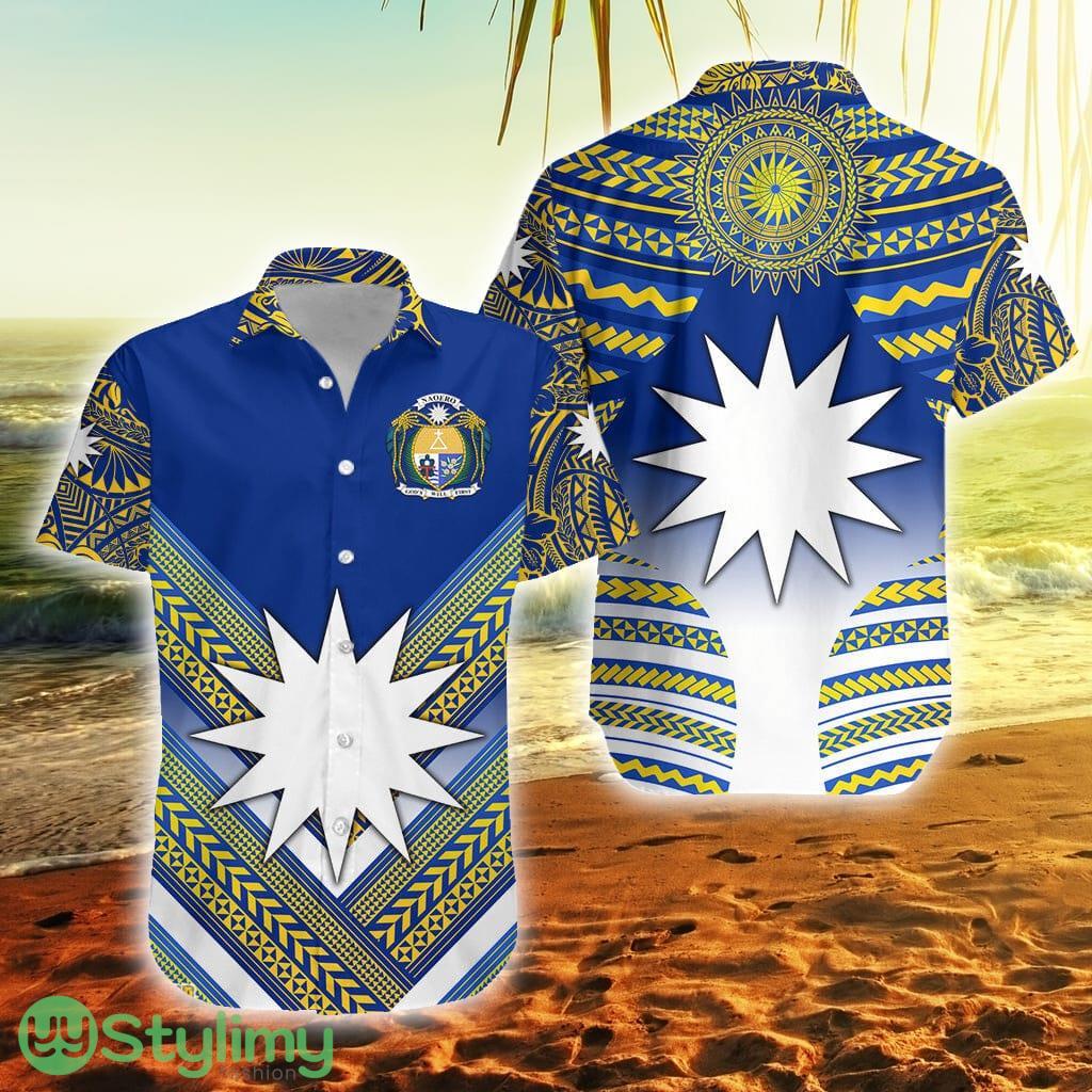 Nauru Polynesian Flag Creative Style Blue No.1 Nauru Button Down Hawaiian Shirt Trending Summer Product Photo 1