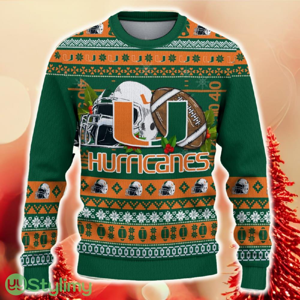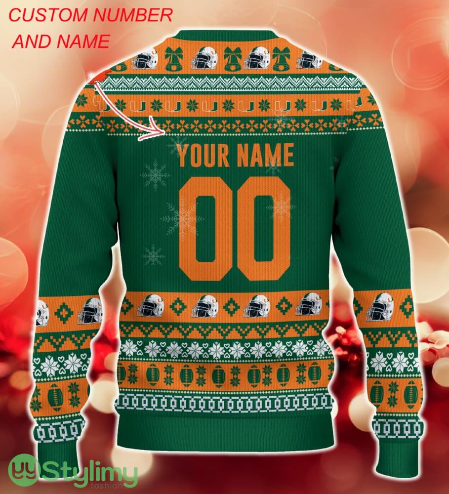 NCAA Miami Hurricanes Christmas Ugly Sweater Custom Number And Name Gift For Fans Holidays Informations: