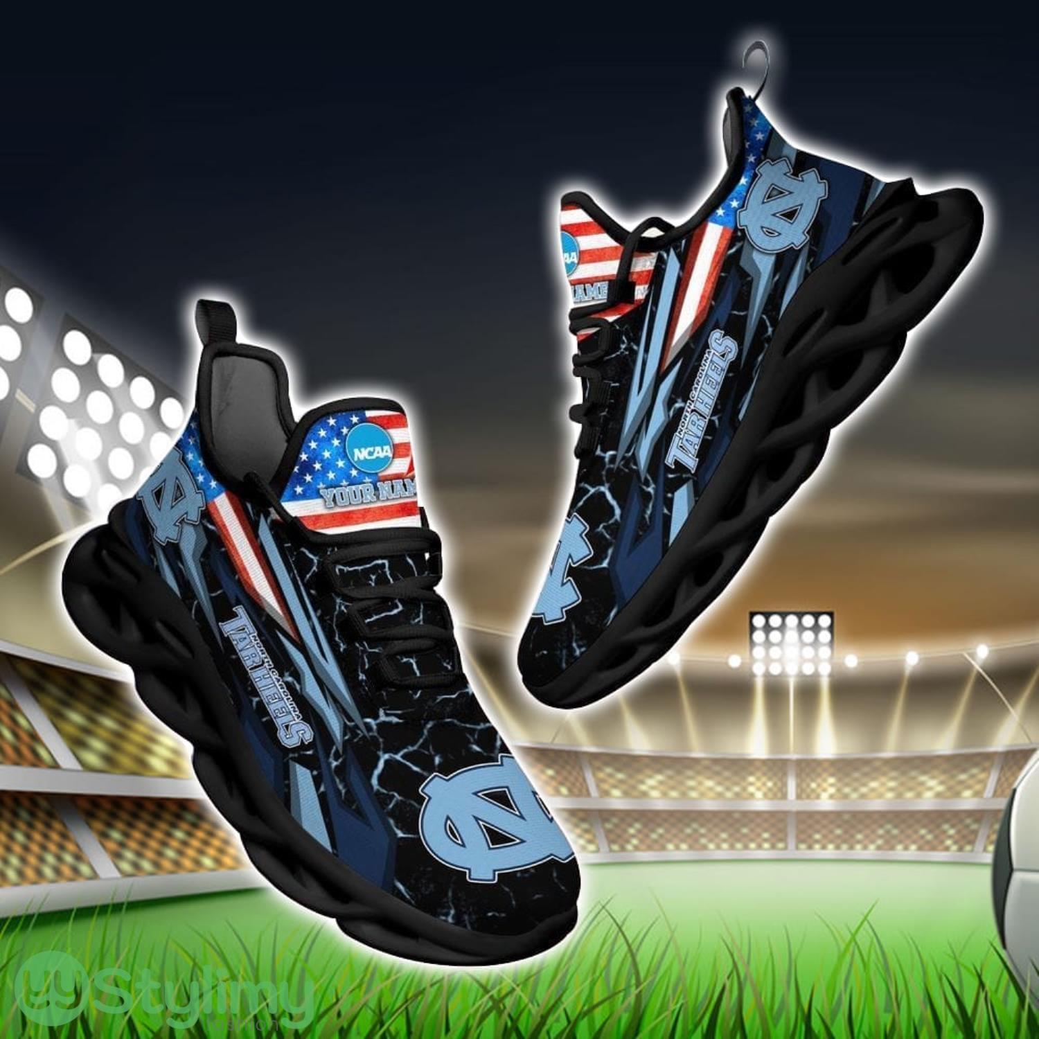 NCAA North Carolina Tar Heels Logo And Flag Custom Name Max Soul Shoes Gift For Fan Product Photo 1