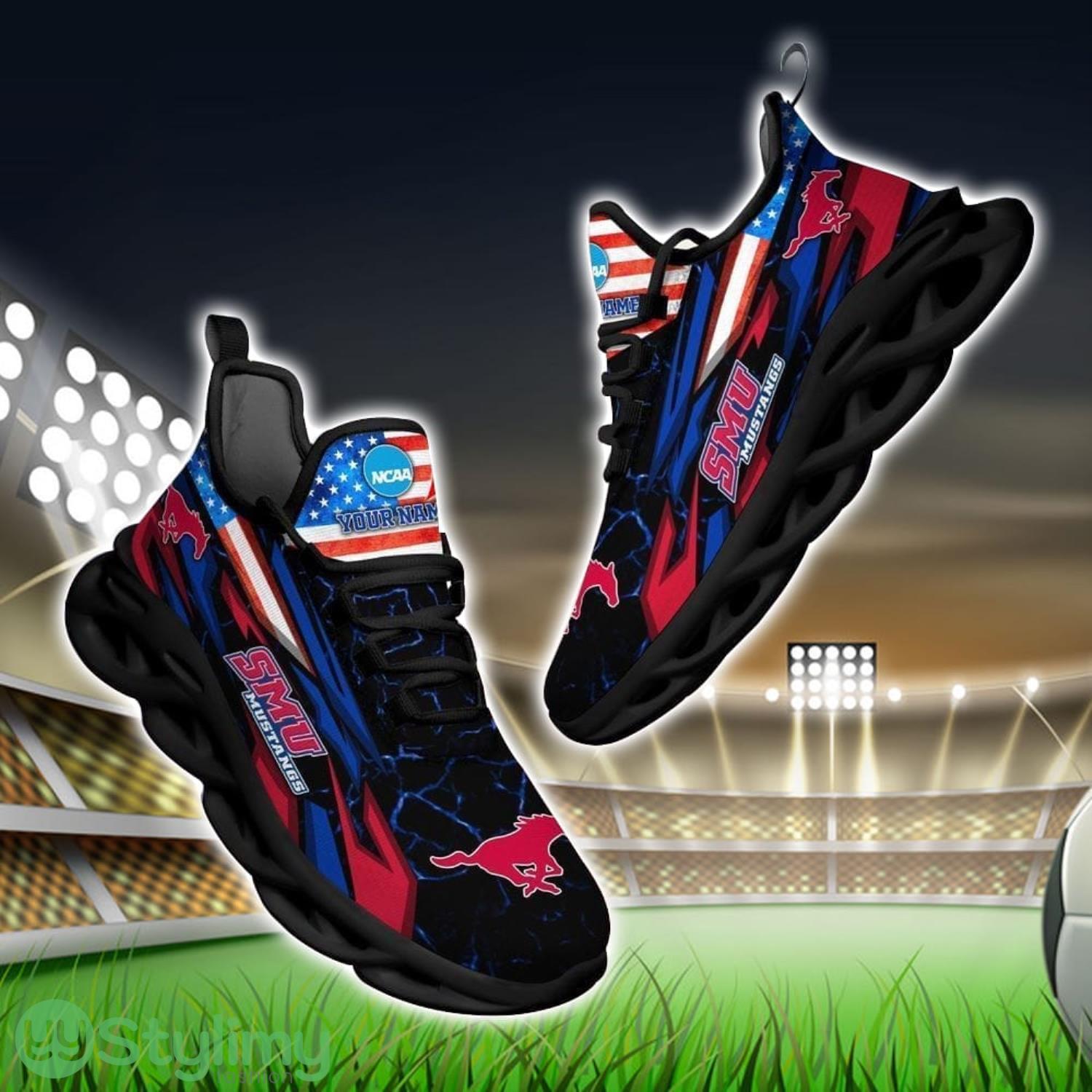 NCAA SMU Mustangs Logo And Flag Custom Name Max Soul Shoes Gift For Fan information: