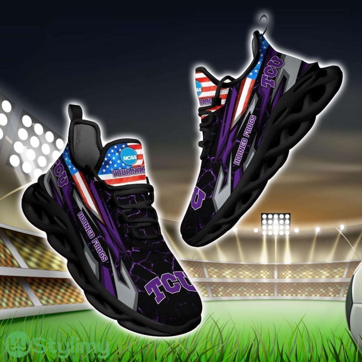 NCAA TCU Horned Frogs Logo And Flag Custom Name Max Soul Shoes Gift For Fan Product Photo 1