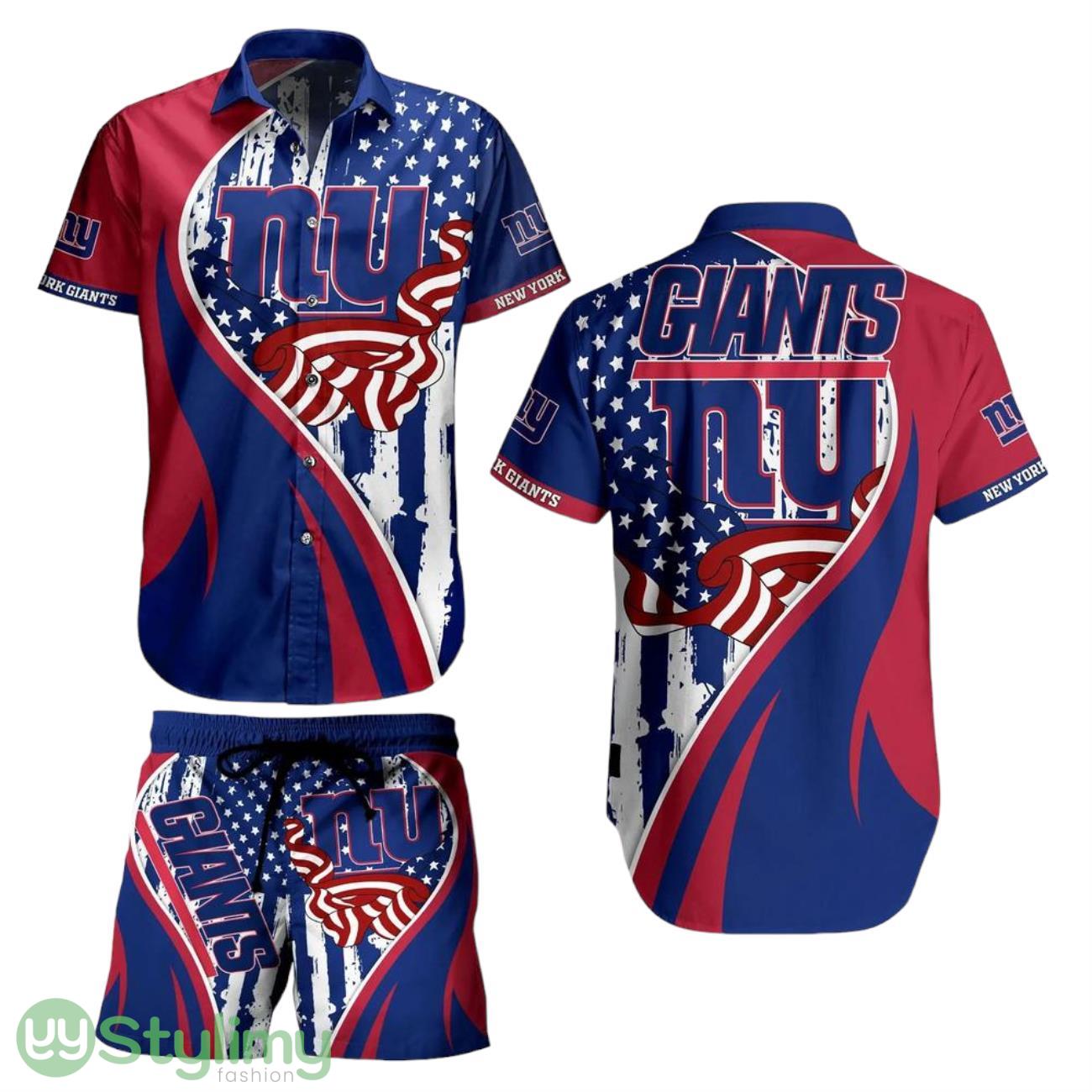 New York Giants NFL 3D Print Hawaiian Shirt And Shorts Vintage US Flag Graphic Summer Gift For Men Women Fan NFL Product Photo 1