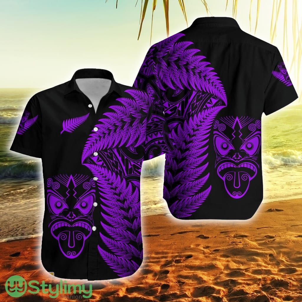 New Zealand Haka Rugby Maori Silver Fern Vibes Purple New Zealand Button Down Hawaiian Shirt Trending Summer Product Photo 1